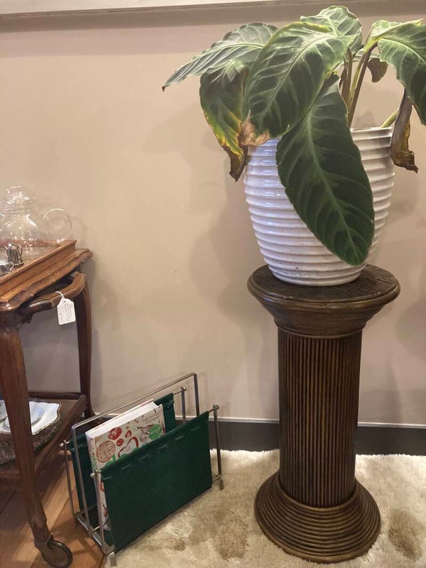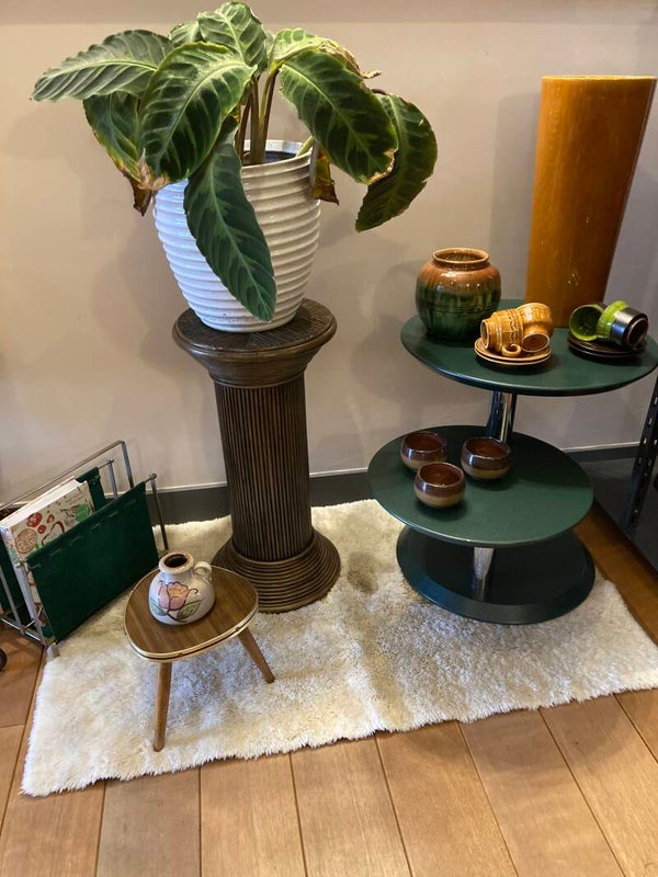 Vintage lectuurbak, groen suède met metalen frame.