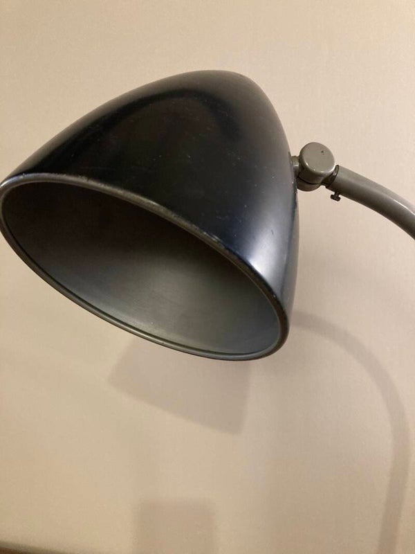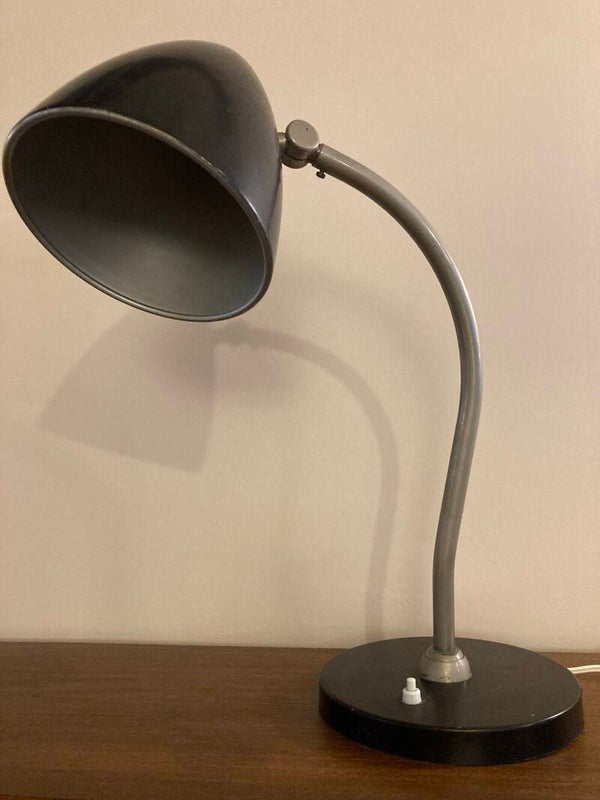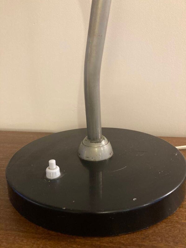 Vintage Hala bureaulamp. In zwart uitgevoerd ontwerp uit de jaren '60, aluminium kap op een zwart metalen voet.