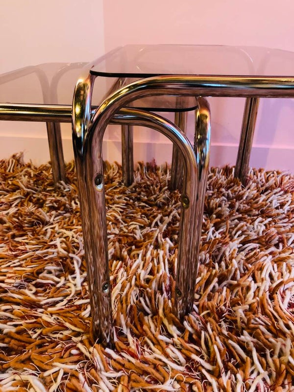 Set bijzettafels jaren ‘70 chroom /rookglas