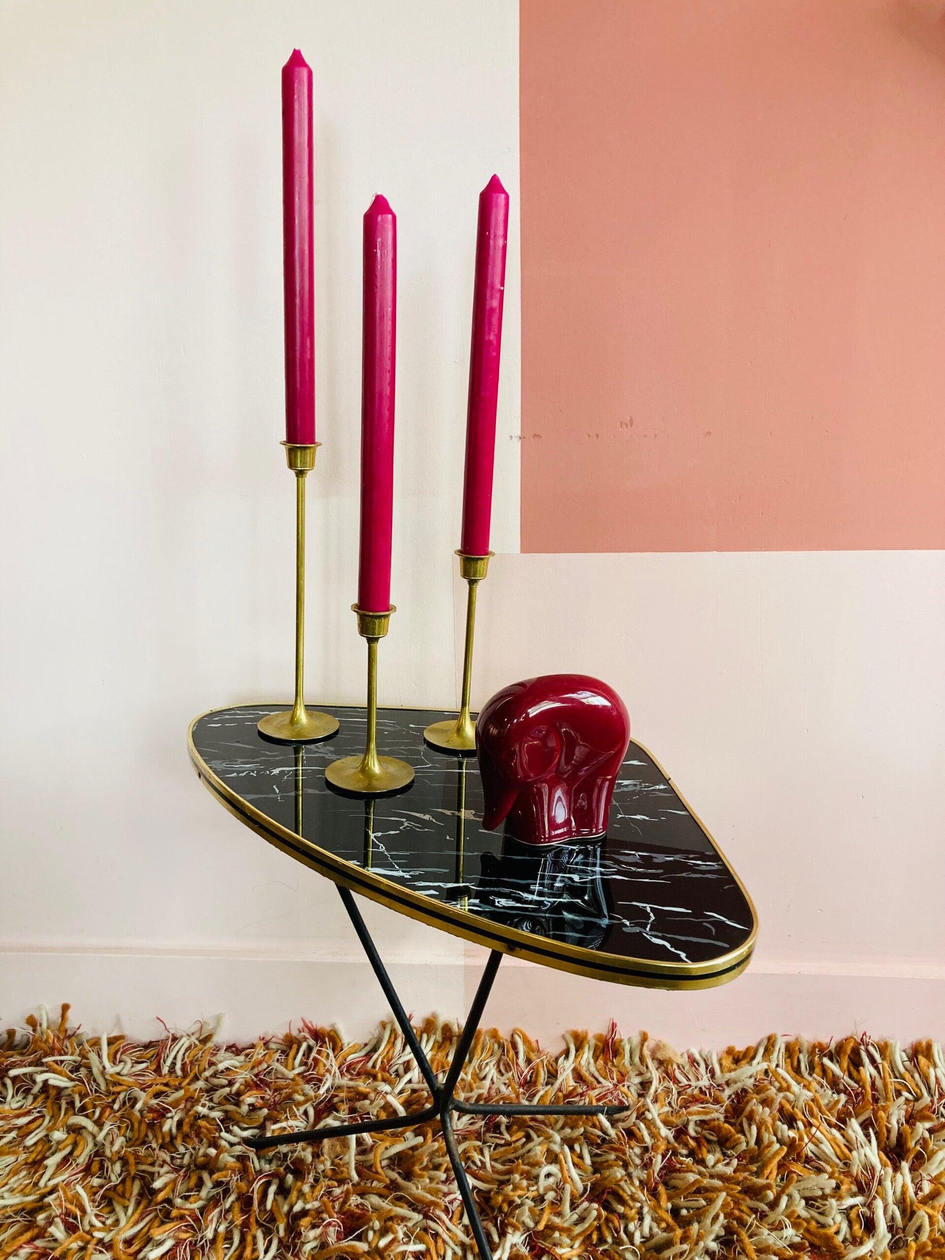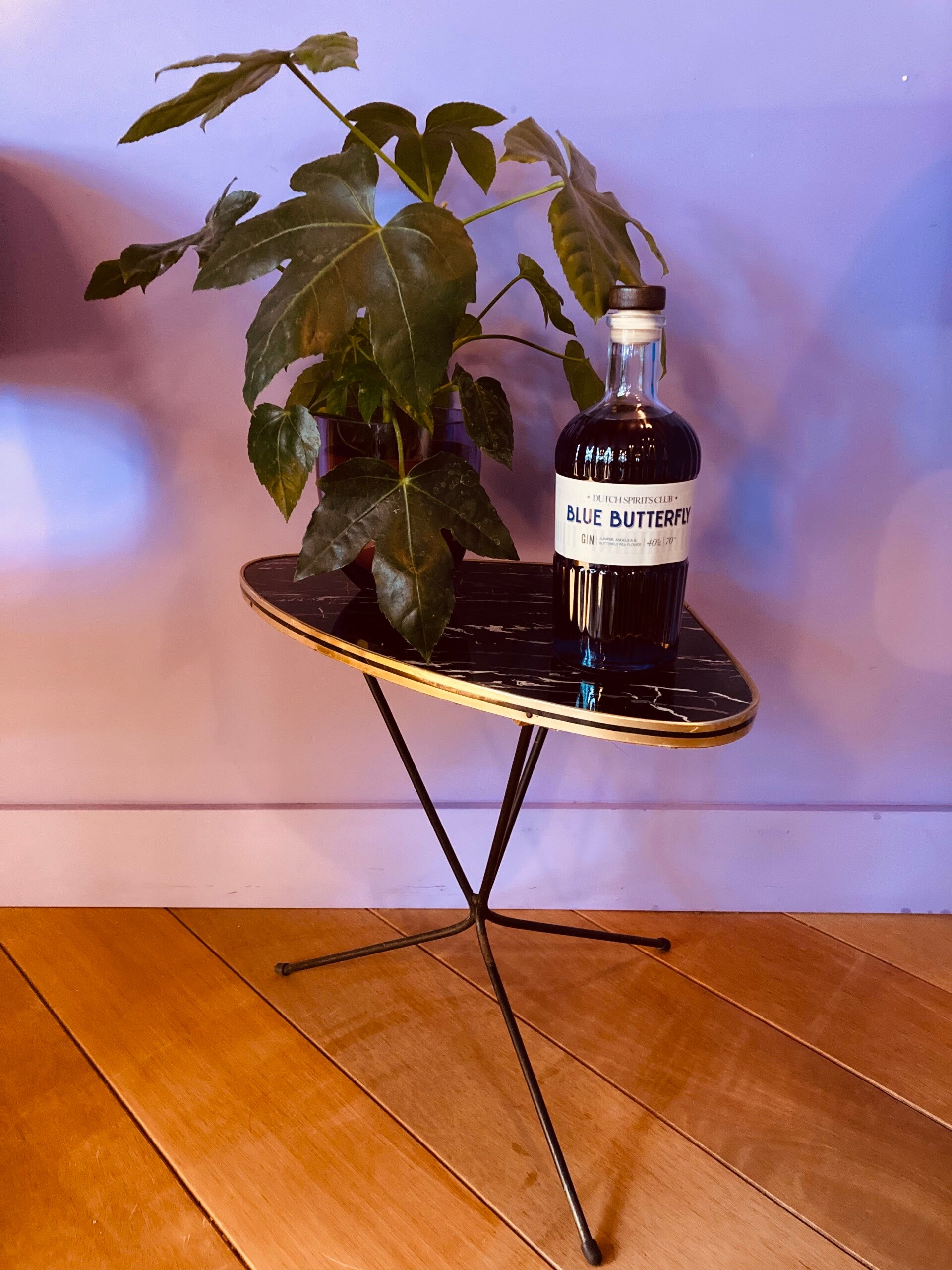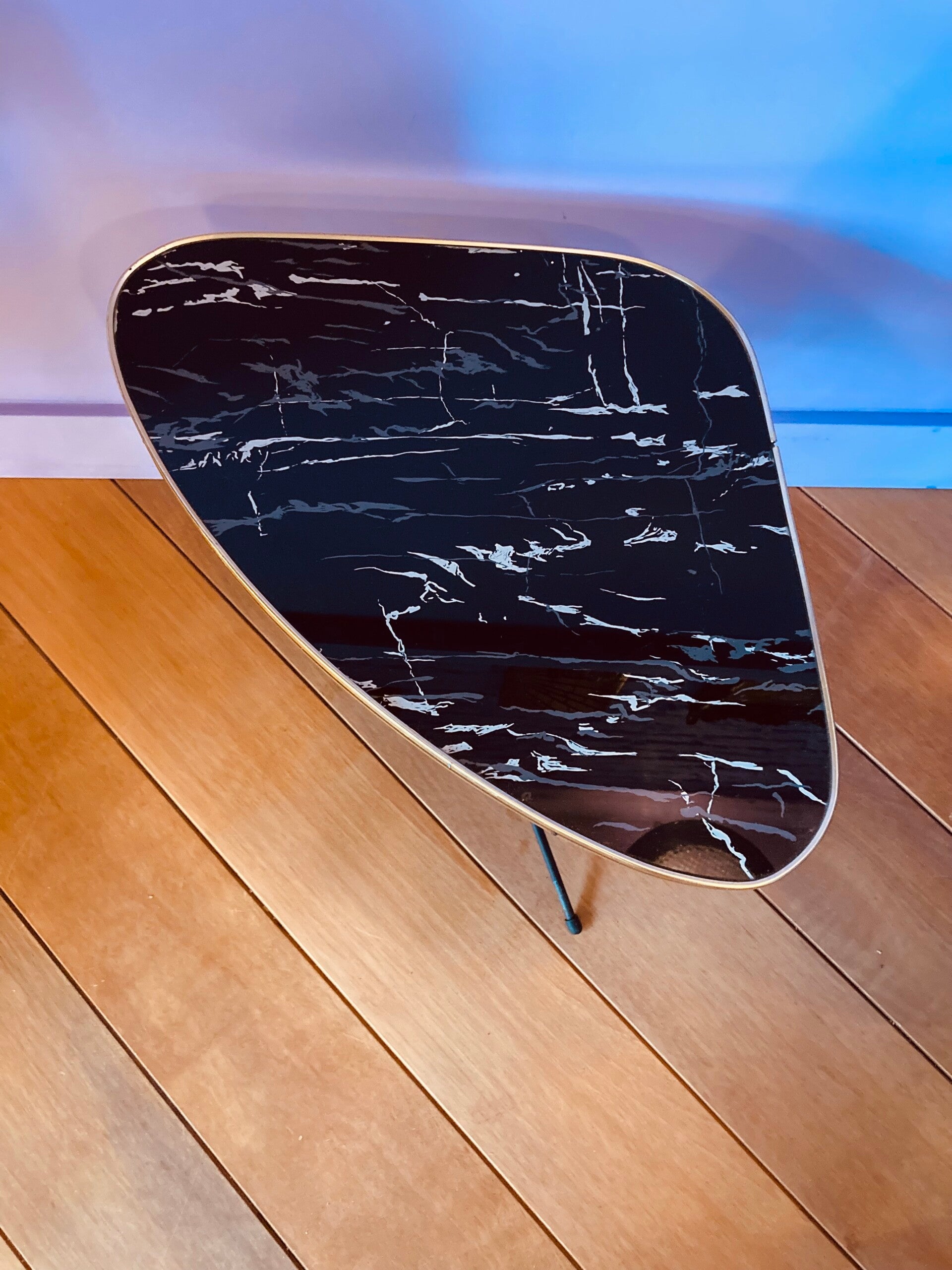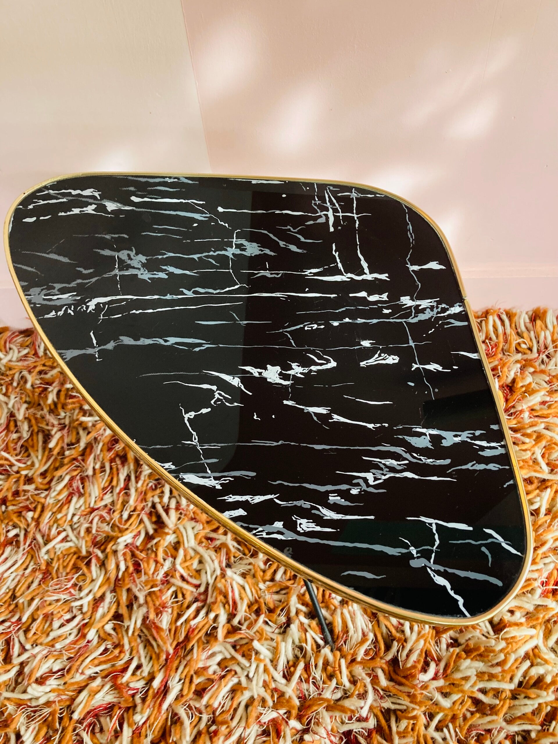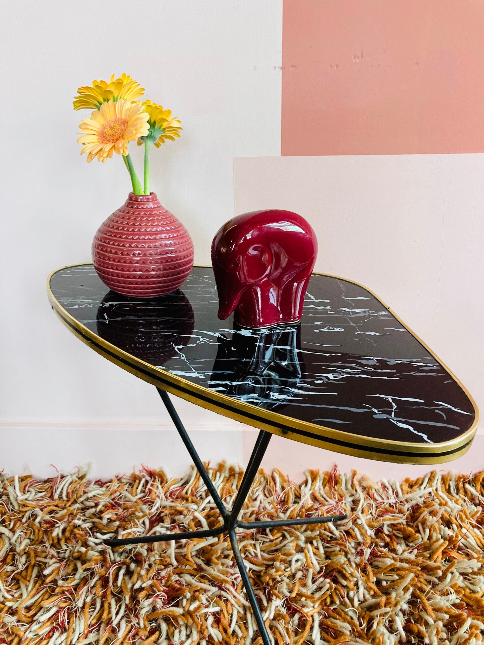 Een mooi marmer patroon in het blad van dit Duitse jaren ‘60 plantentafeltje!