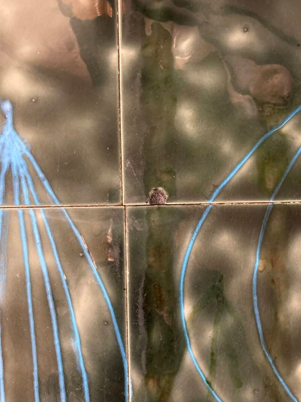 De tafel is in heel goede staat. In het tegeltableau heeft een tegel een kleine chip, en een tegel met heel lichte barst. Hiermee is rekening gehouden in de prijs.