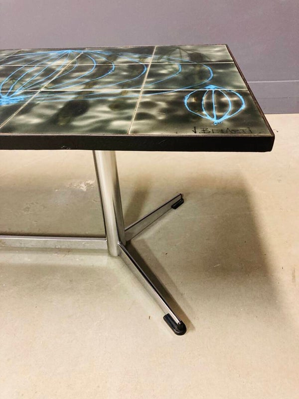 Vintage salontafel uit België van Juliette Belarti uit de jaren ‘60 met tegeltableau.