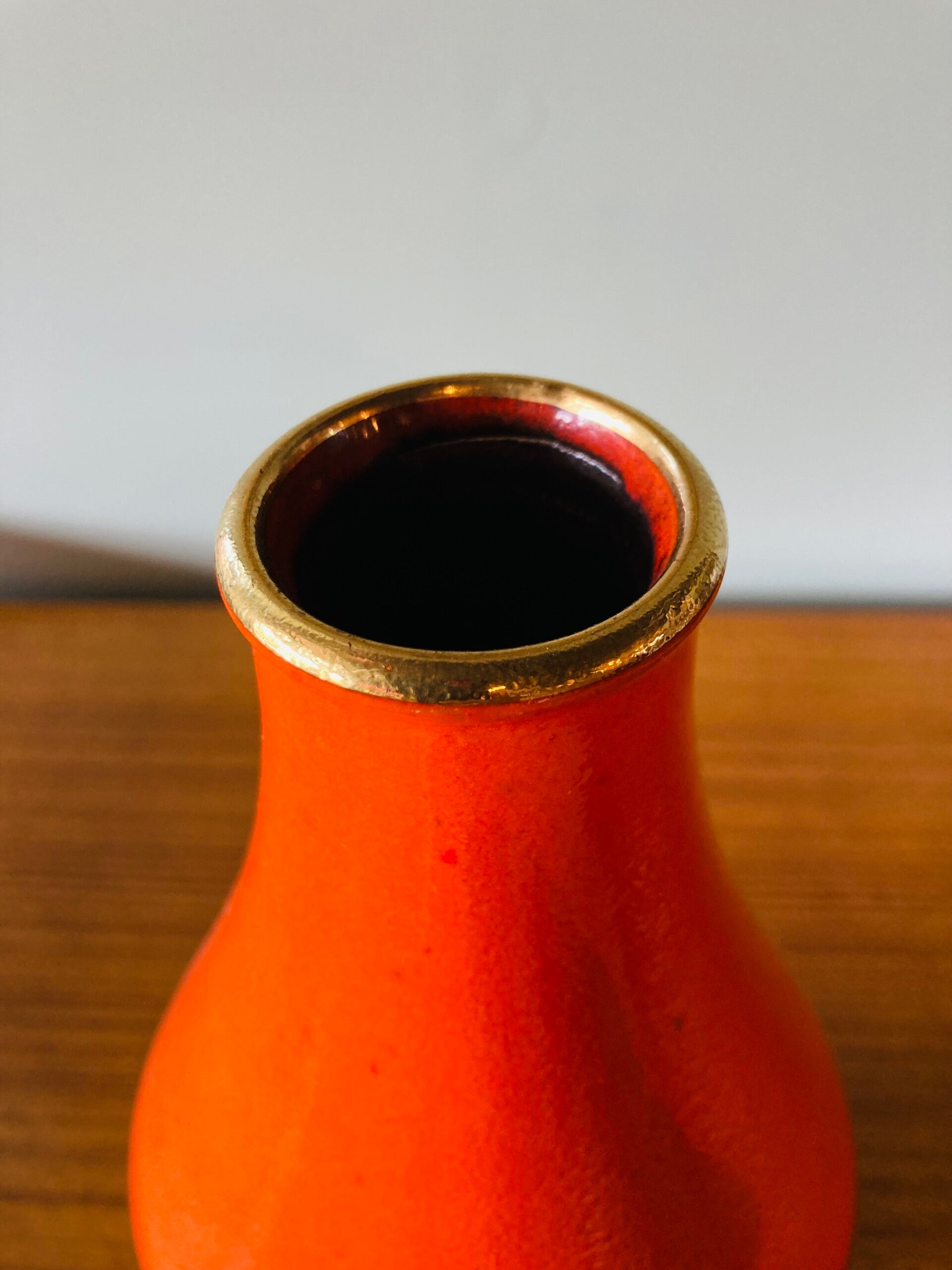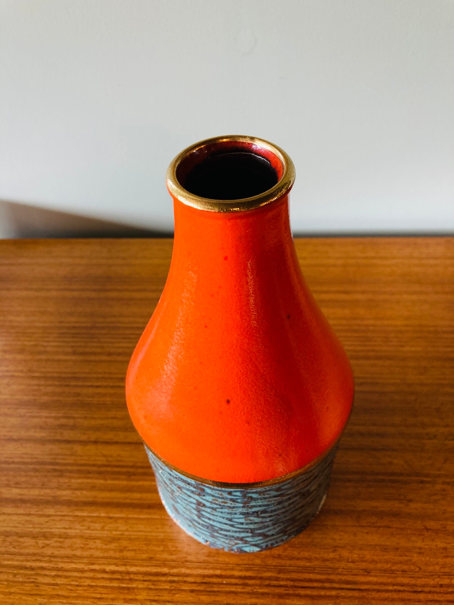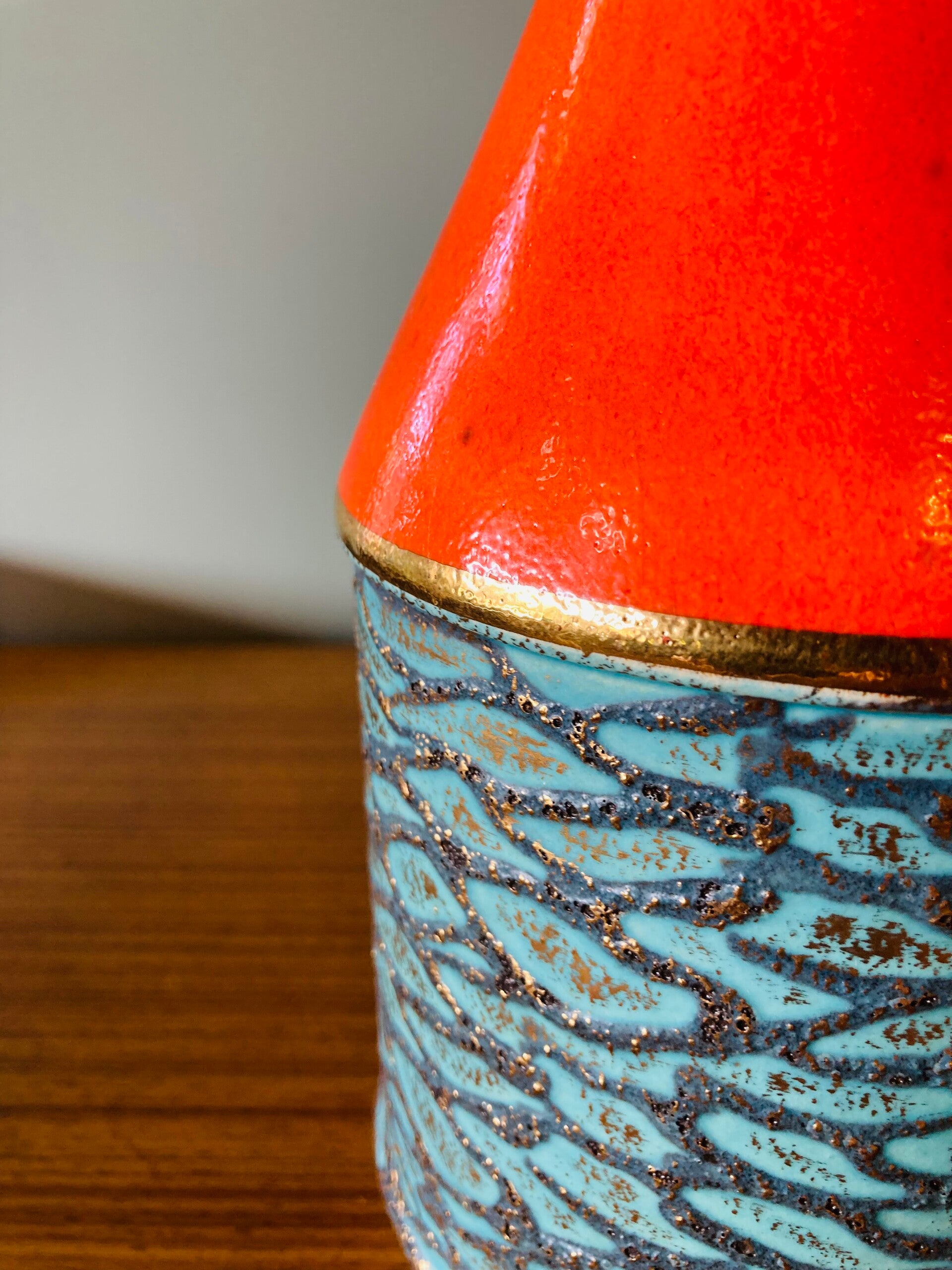 West-Germany vaas, oranje/turquoise/goud met reliëf