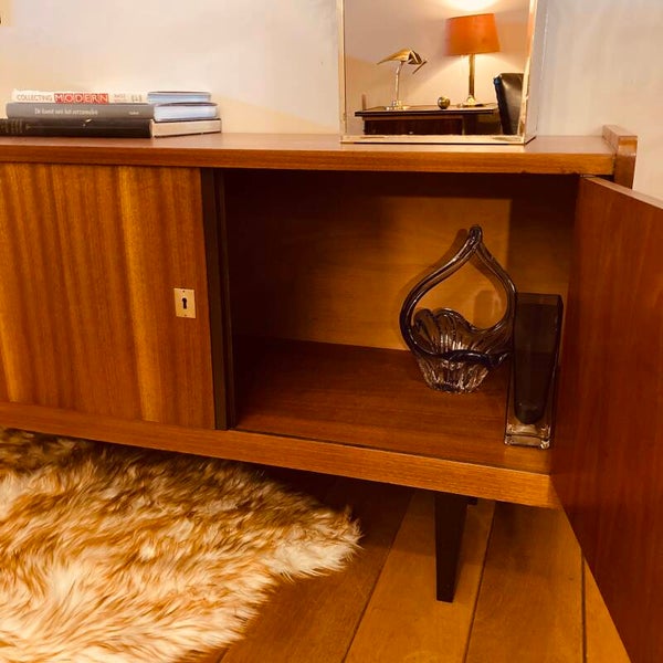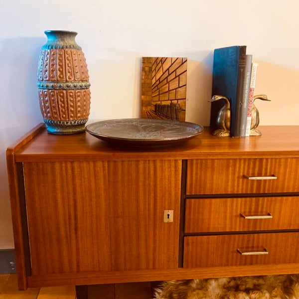 Bijna zonde om er een tv op te zetten, maar het zou kunnen op dit stijlvolle mid-century dressoir.