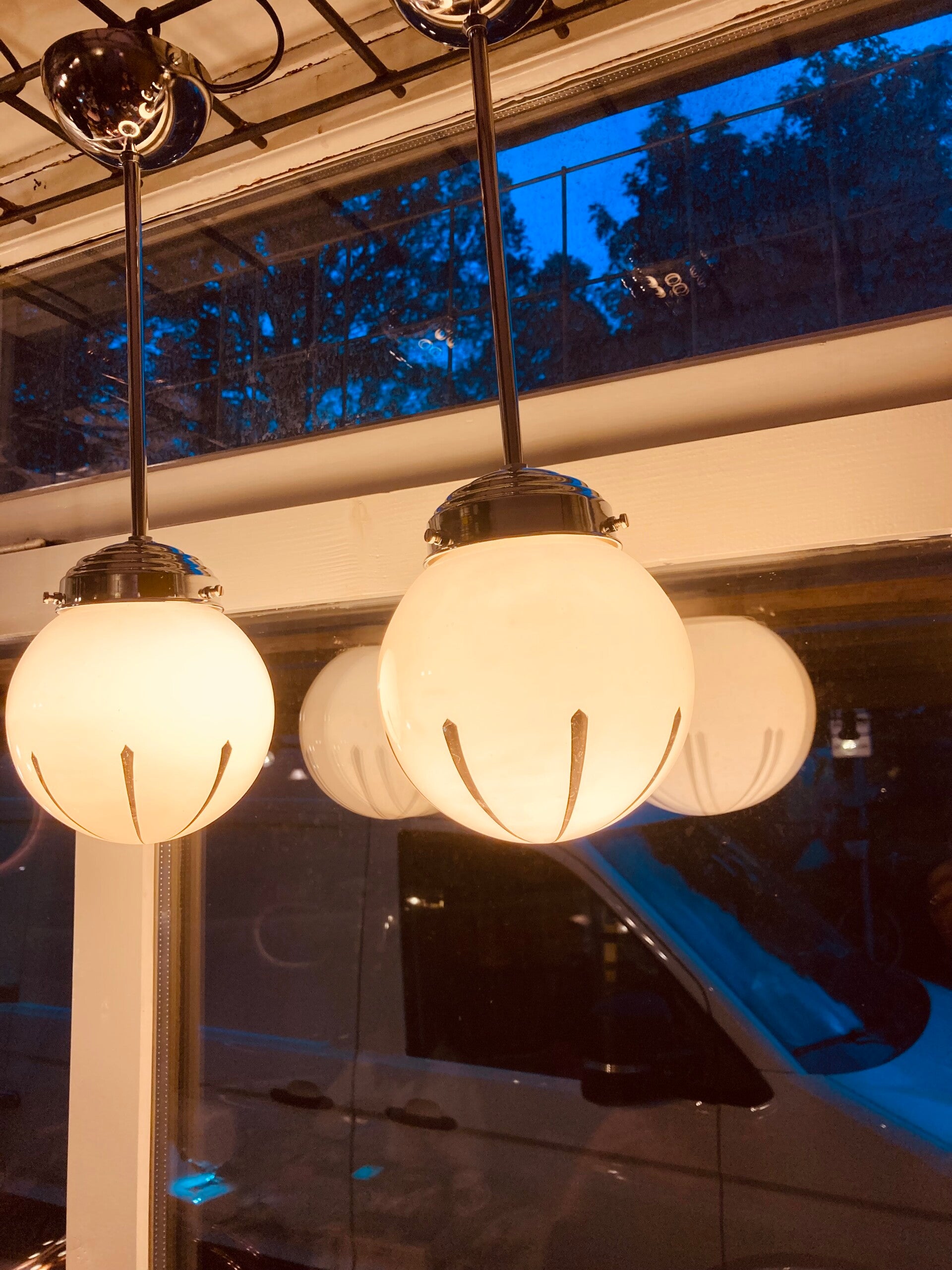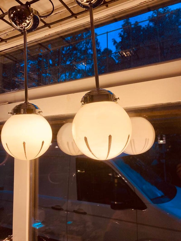 Art deco hanglampen, een set uit de jaren ‘30 in heel goede staat.