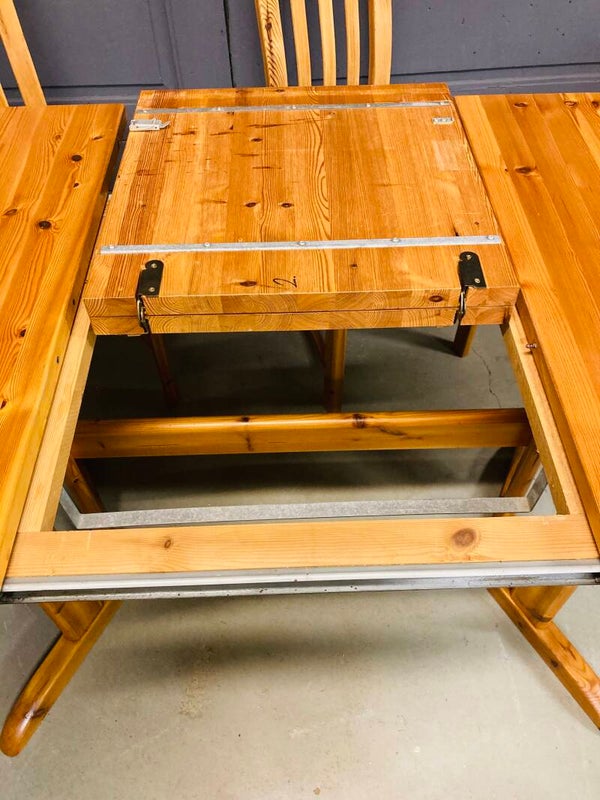 Een rustige natuurlijke Scandinavische sfeer is gegarandeerd met deze mooie jaren ‘80 eettafelset van Kilde Møbler uit Denemarken.