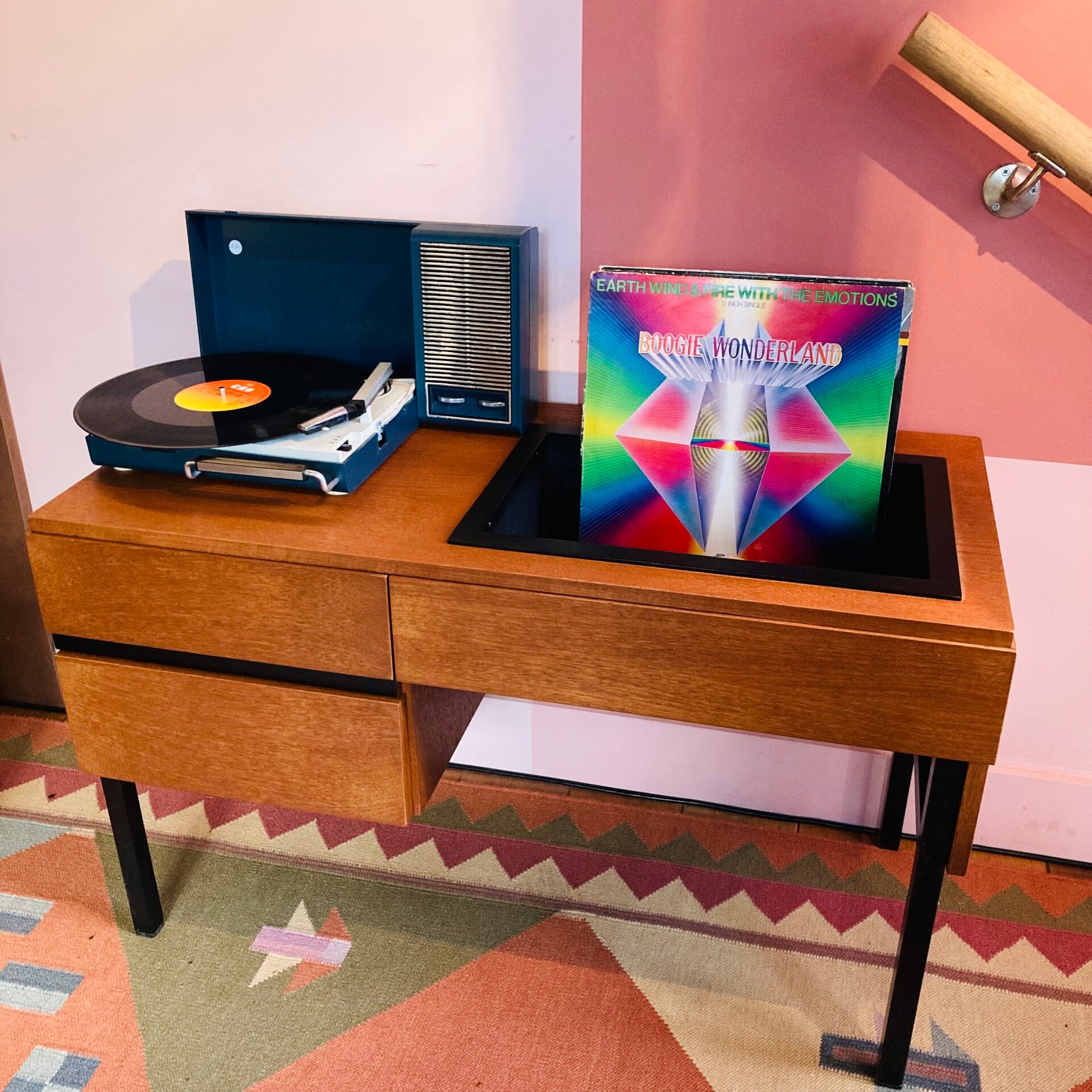 Vintage pla(n)tentafel/bartafel met lades, teak fineer