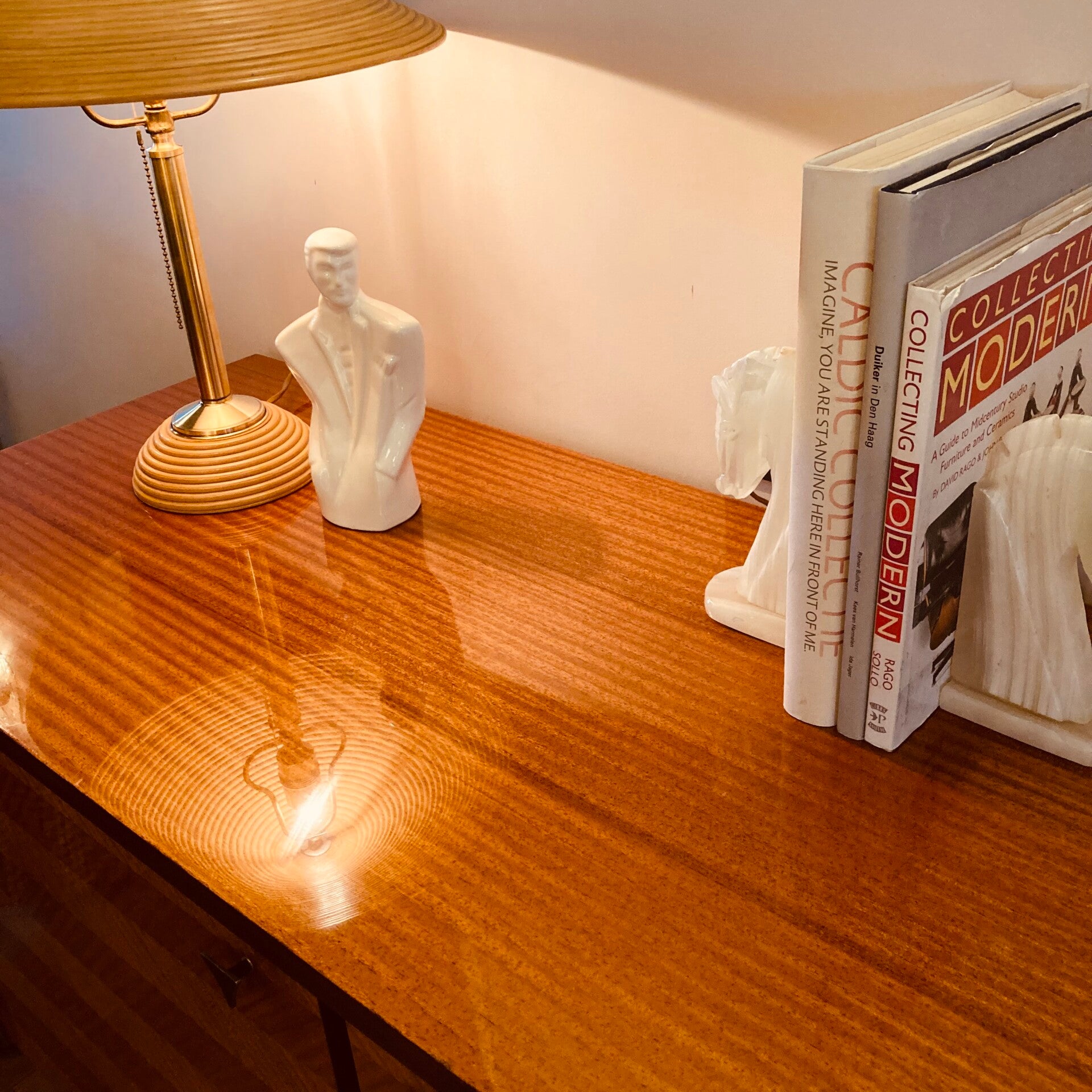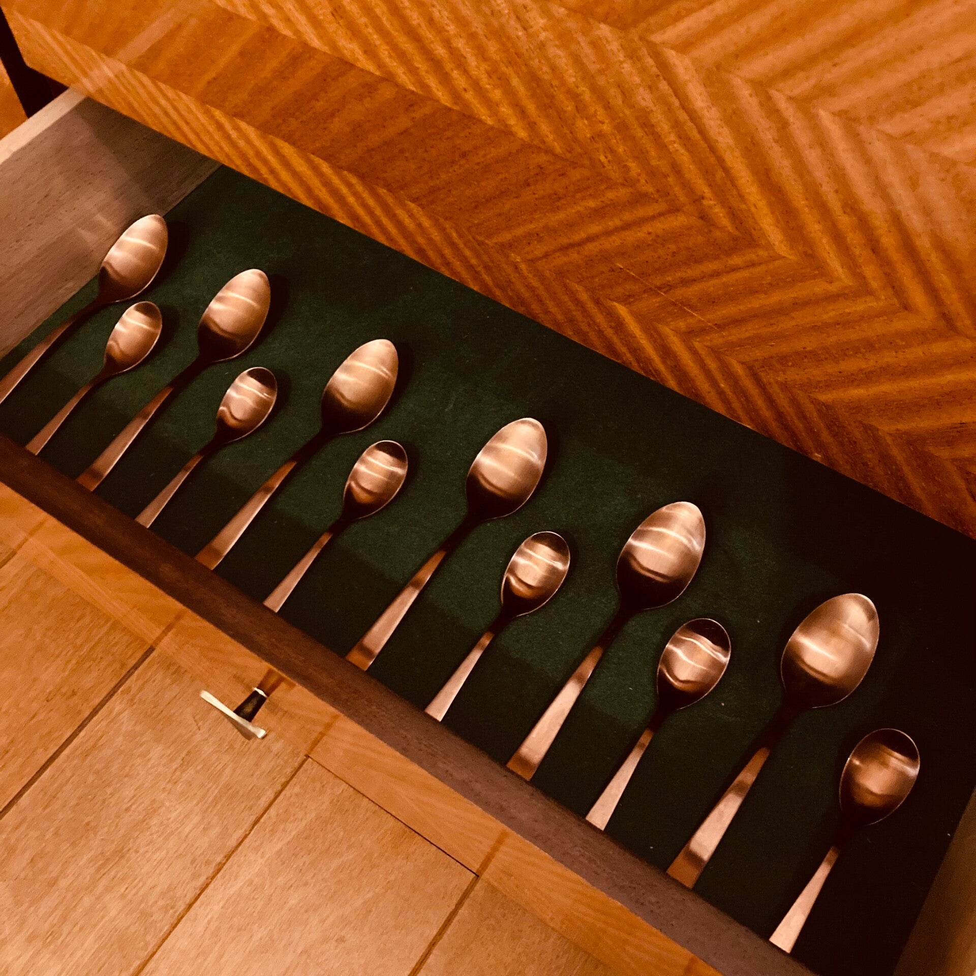 Daarnaast heeft het dressoir veel bergruimte en de lade heeft nog het originele donkergroene vilt in goede staat.