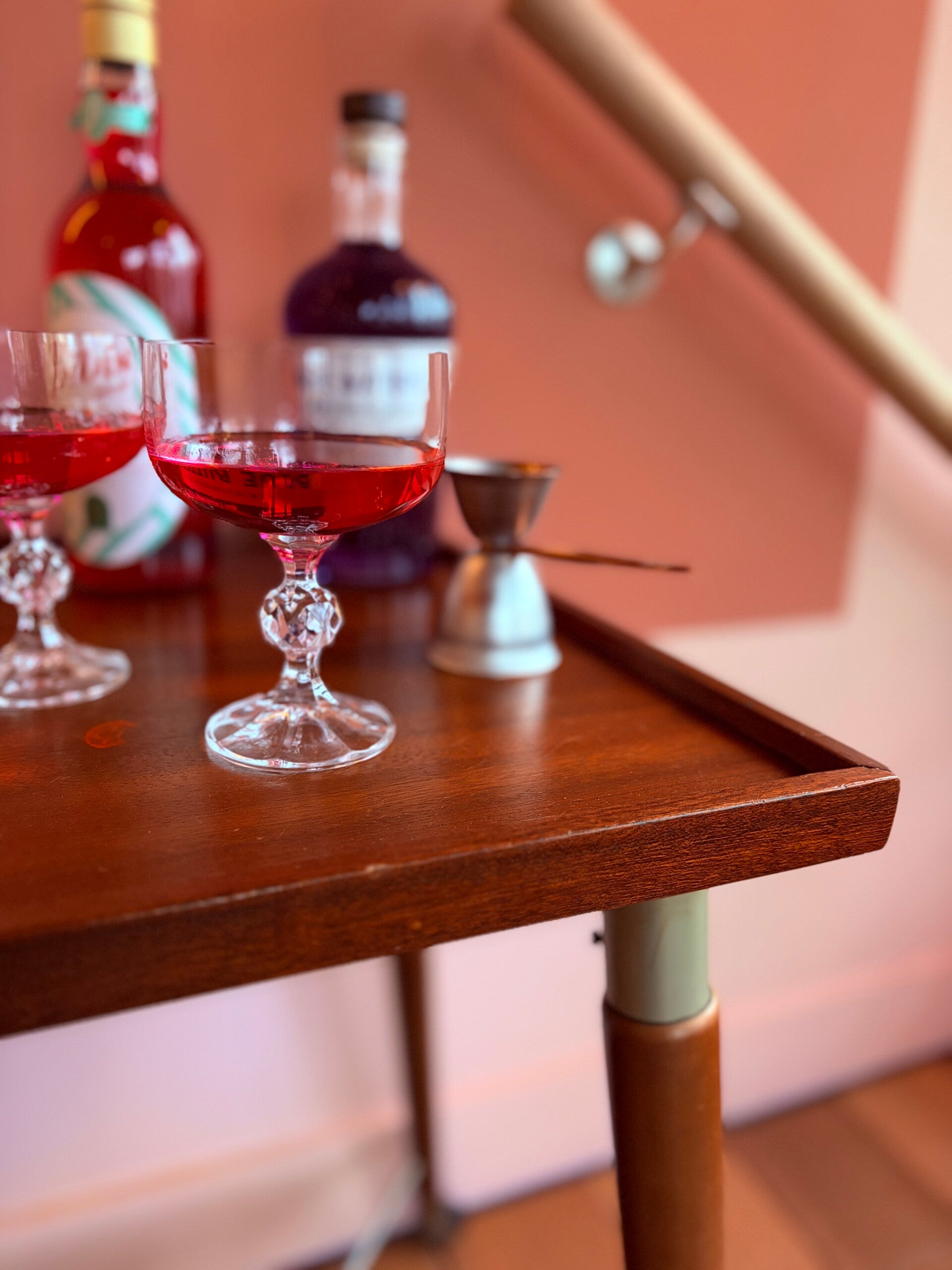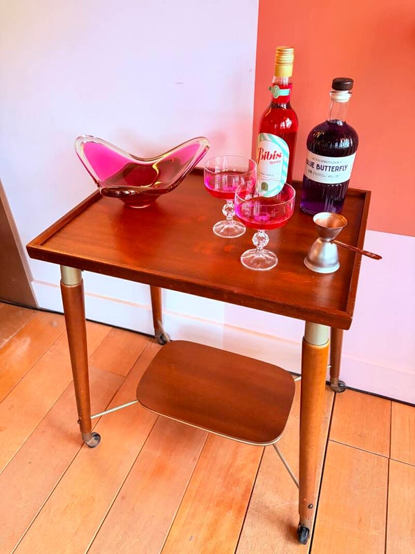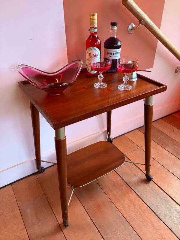 Uiteraard kun je deze trolley op verschillende manieren aanpassen aan je interieur - met planten, vazen, boeken, platen - maar voor de foto had ik zin om de vrolijke, zonnige barfunctie te showen.