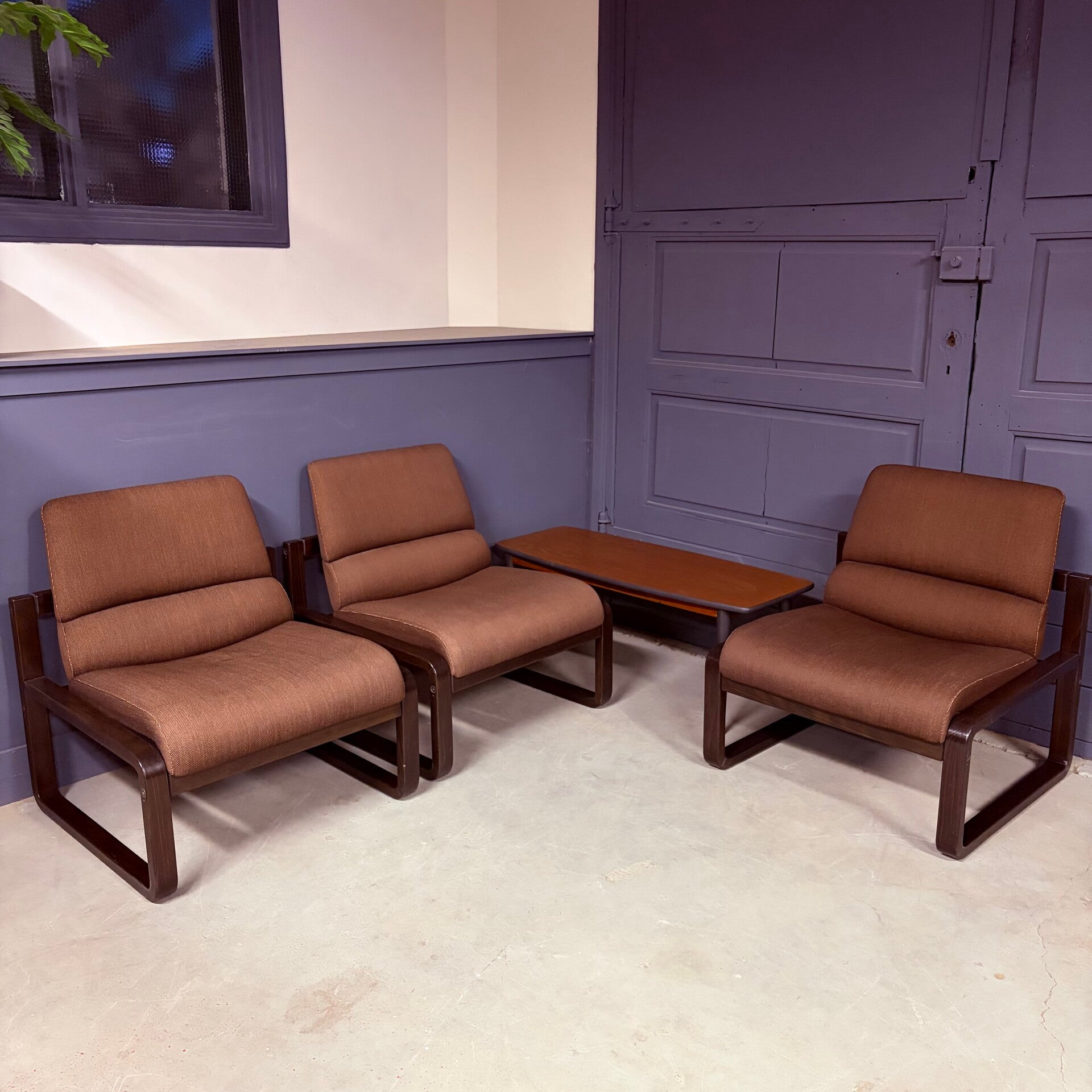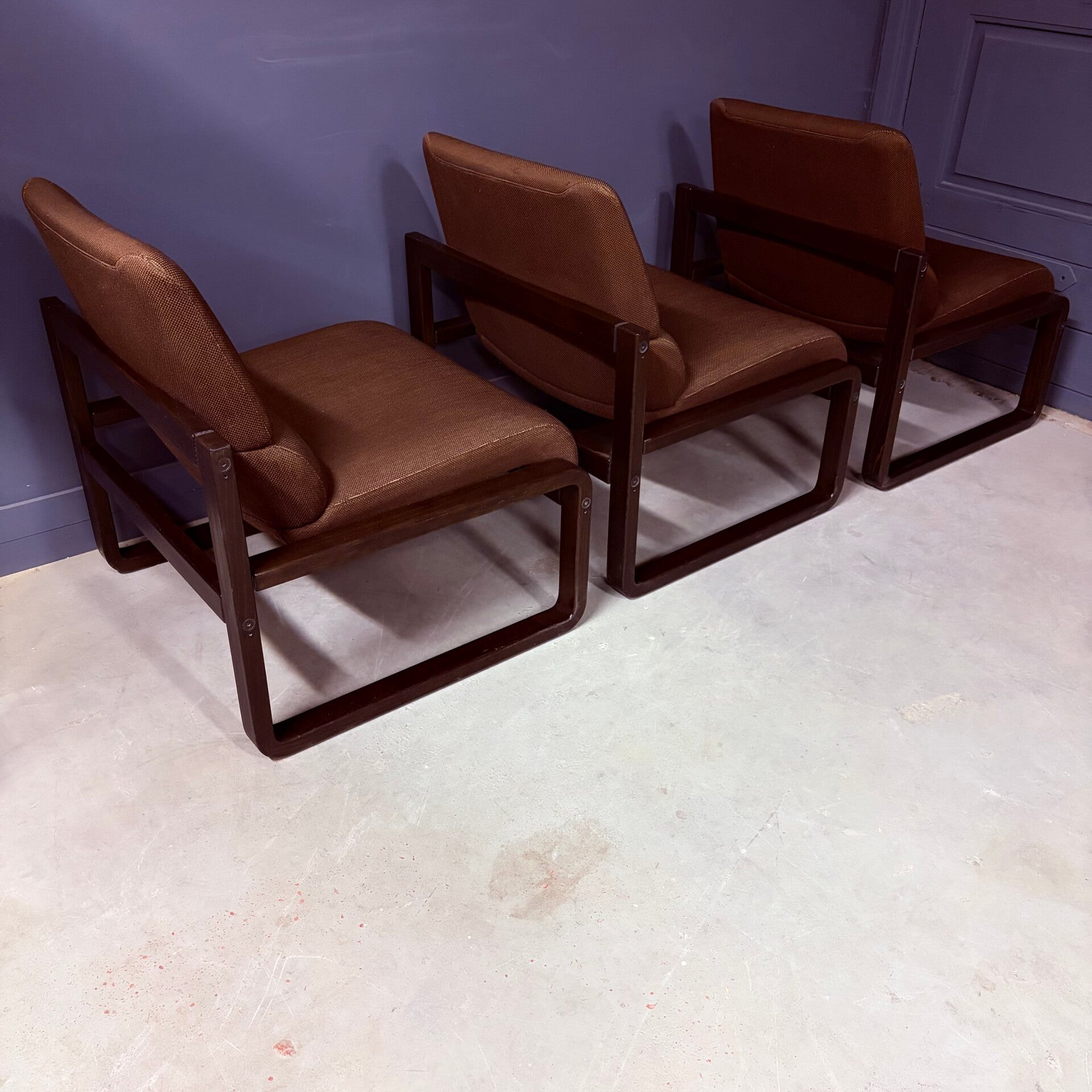 De fauteuils zij in geheel originele en goede staat. Wel heeft de stof aan de achterzijde een paar kleine, maar nauwelijks zichtbare gaatjes, hiermee is rekening gehouden in de prijs.