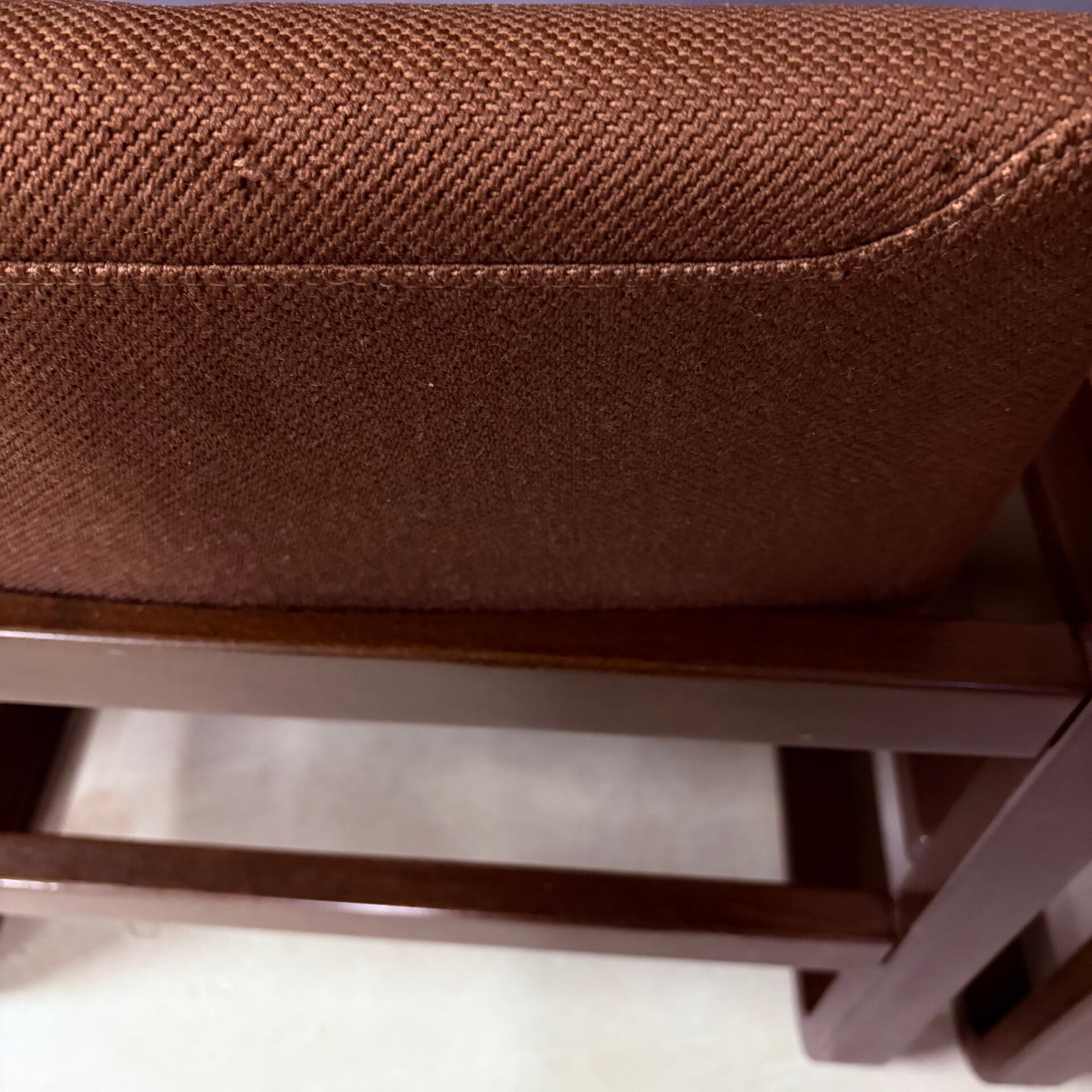 De warme chocoladekleur, de zachte ronde vormen van zowel het massief houten frame als de zitting, combineren goed in zowel rustige interieurs als een inrichting met meer uitgesproken kleuren.